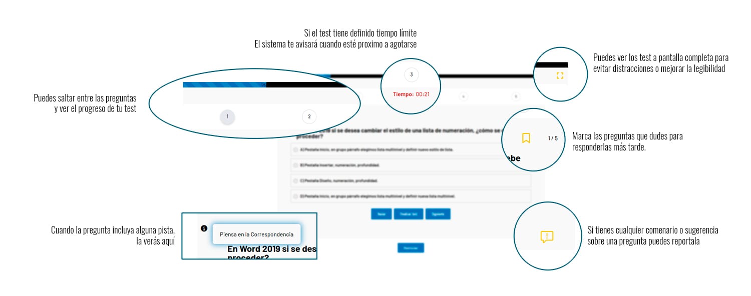 Nuestros test están pensados para que practiques y refuerces tus conocimientos de la forma más cómoda y eficaz. Da igual dónde estés o qué hora sea: podrás hacer tus test desde cualquier dispositivo, siempre que lo necesites.